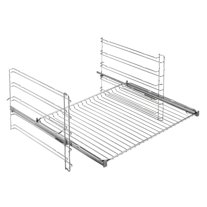 Backblechauszug - die Teleskopschienen machen die Zubereitung leckerer Mahlzeiten noch einfacher. Jetzt können Sie die Bleche bequem herausziehen und das Sicherheitsschloss verhindert, dass diese nach vorne kippen oder herausrutschen. Sie lassen sich problemlos an vorhandene Racks anklemmen und lassen Ihnen so beide Hände frei zum Braten, Kochen und Würzen. Einhängegitter und Rost sind nicht im Lieferumfang enthalten.