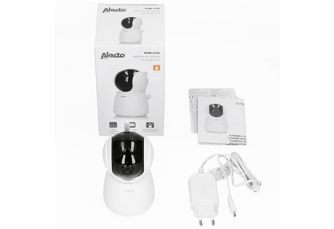• In den Farben weiß/anthrazit erhältlichDas Babyphone mit Kamera (das DVM-275) wird standardmäßig mit einer Kamera (der Babyeinheit) und dem Farbdisplay (der Elterneinheit) geliefert. Ein Babyphone, mit dem Sie immer hören und sehen können, was passiert, für ein beruhigendes Gefühl. Abgesehen noch vom zusätzlichen Spaß! Denn es gibt nichts Schöneres als Ihrem Kind beim friedlichem Schlafen oder Erkunden zuzuschauen. Aber was, wenn Sie mehrere Kinder haben? Oder ein getrenntes Spielzimmer? Dann ist eine zusätzliche Kamera natürlich sehr praktisch. Auf der Elterneinheit Ihres DVM-275 können Sie verschiedene Kameras verbinden.Die DVM-275C ist eine zusätzliche Kamera, die Sie zu Ihrem Standardpaket hinzufügen können. Sie haben die Möglichkeit, vier Kameras an die Elterneinheit anzuschließen. In einer Einrichtung mit mehreren Kameras können Sie die Scanansicht nutzen, um das Filmmaterial von allen Kameras zu betrachten. Während dieser Scanansicht kann die Vox-Funktion aktiviert werden. Wenn von keiner Kamera ein Geräusch erkannt wird, schaltet sich die Elterneinheit aus. Sie können das Display auch manuell ausschalten. Sobald das Display ausgeschaltet ist und ein Geräusch von einer der Kameras erkannt wird, zeigt die Elterneinheit zuerst das Bild von der Kamera, bei der das Geräusch erkannt wurde.Sobald weitere Kameras angeschlossen sind, kann die Elterneinheit sofort das Bild dieser speziellen Kamera anzeigen, wo ein Ton erkannt wird. Es ist auch möglich, die Bilder aller verknüpften Kameras automatisch zu rotieren, sodass die Bilder aller Kameras abwechselnd angezeigt werden. Eine zusätzliche Kamera ist sinnvoll, wenn Ihr Kind häufig woanders einschläft, so müssen Sie die Babyeinheit nicht mitnehmen und jedes Mal neu zu installieren.Aus der Ferne bedienbare KameraDas Alecto Baby DVM-275C ist eine neig- und schwenkbare Kamera, die aus der Ferne bewegbar ist. So haben Sie Sicht auf alle Ecken und Winkel des Raumes. Ideal für das Überwachen Ihrer Kinder in einem größeren Raum, wie einem Spielzimmer.Babyphone mit Kamera, schönes Design und ausgezeichnete QualitätUnsere Designer verstehen, dass Sie die Elterneinheit in Ihr Wohnraum passen muss, aber auch die Babyeinheit(en) können sich sehen lassen. So ist das Babyphone gradlinig designt worden. Stilvoll, unauffällig und in kleinem Format. Ein attraktives Produkt, das sicher unter die Kategorie ausgezeichnete Qualität fällt.Die wichtigsten Funktionen:• Die Verbindung zwischen Baby und Elterneinheit(en) ist 100 % störungsfrei.