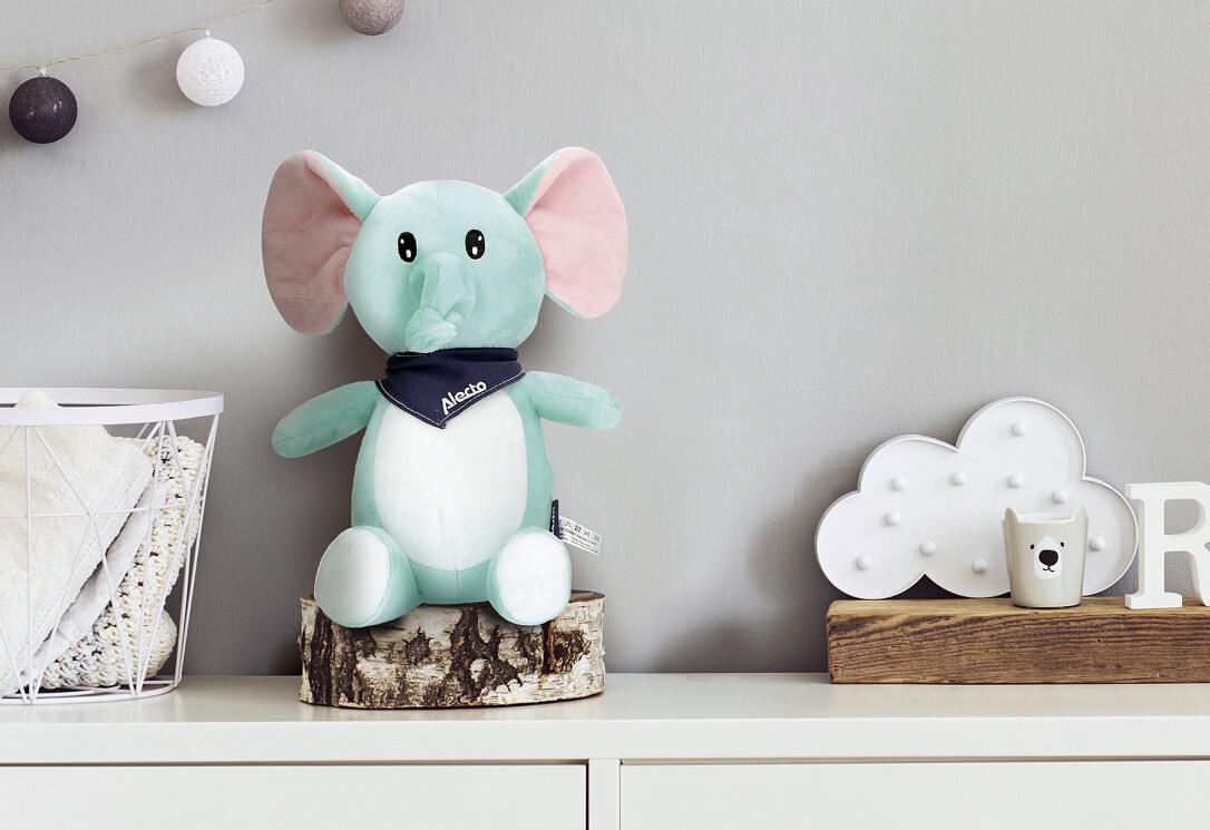 Alecto Kuscheliger Elefant mit beruhigenden Geräuschen und Nachtlicht