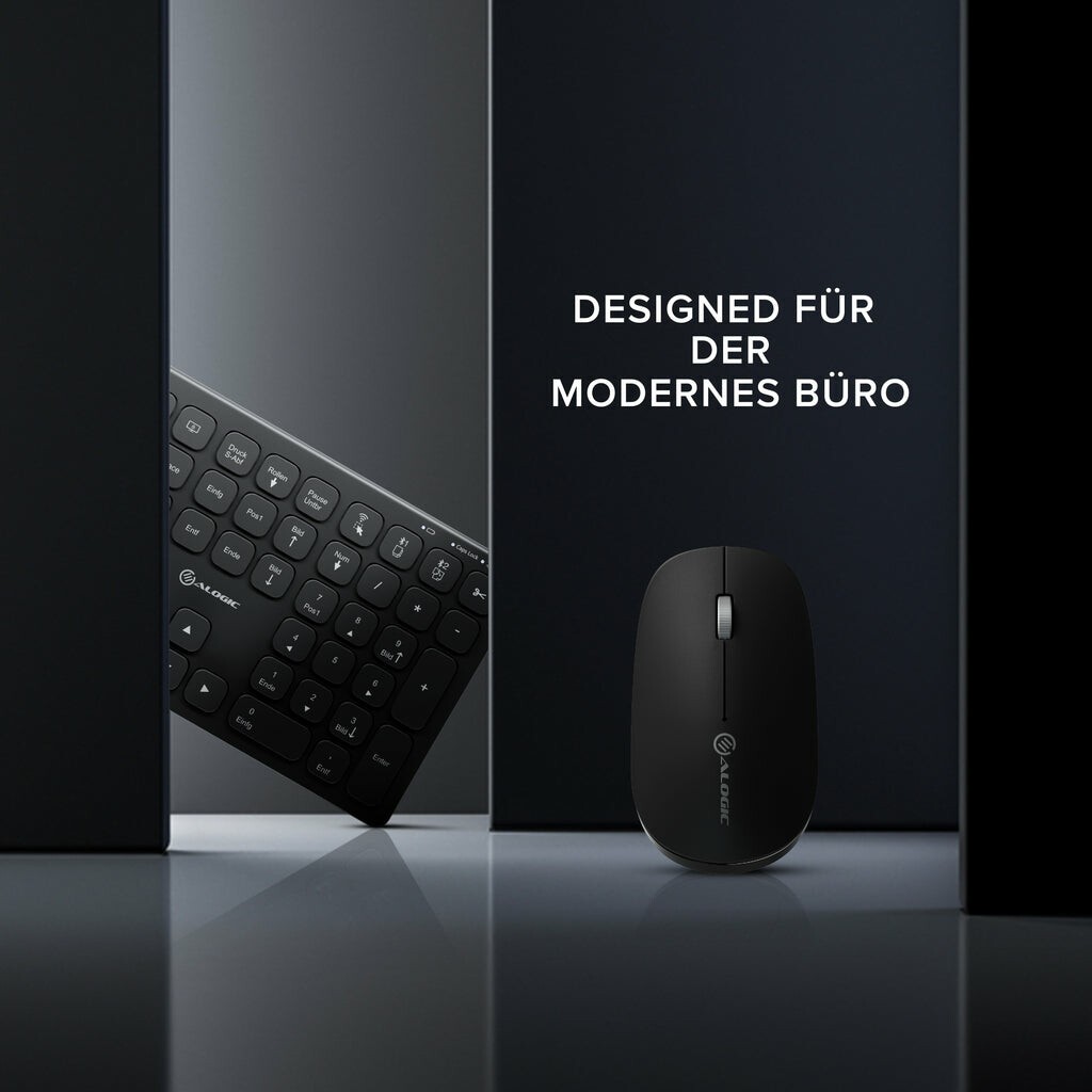 ALOGIC ASKBT3WC-DE, Volle Größe (100%), Kabellos, RF Wireless + Bluetooth, QWERTZ, Schwarz, Maus enthalten