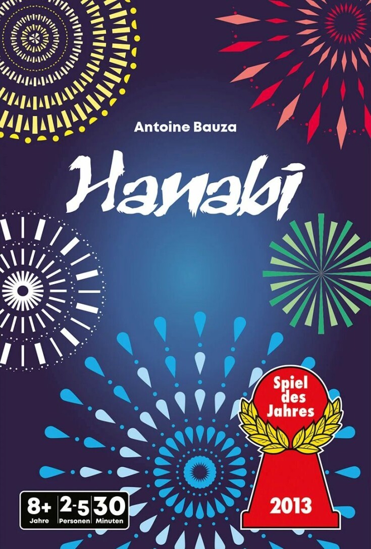 In Hanabi zaubert ihr gemeinsam ein prächtiges Feuerwerk an den Himmel. Dafür müsst ihr 5 aufsteigende Zahlenreihen in verschiedenen Farben bilden. Das Problem: Ihr könnt eure eigenen Handkarten nicht sehen! Außerdem dürft ihr euch nur ganz bestimmte Hinweise zu euren Karten geben. Nur wenn ihr zusammenarbeitet und klug miteinander kommuniziert, könnt ihr das schönste Feuerwerk kreieren! Diese Neuauflage des Spiel des Jahres 2013 bietet euch ein frisches, modernes Artwork und enthält mit ''Buntes Feuerwerk, ''Schwarzpulver und ''Bonusplättchen bereits 3 Erweiterungen, die eure Herausforderungen noch abwechslungsreicher machen.