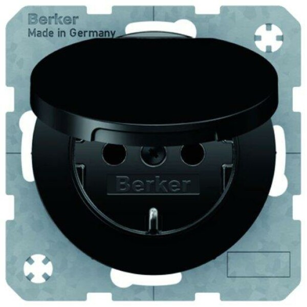 Steckdose SCHUKO mit Klappdeckel Berker R.1/R.3 schwarz, glänzend - erhöhter Berührungsschutz VDE 0620-1 16 A, 250 V~ Verbindungsklemmen nach VDE 0620-1 Verbindungsklemmen nach IEC 60884-1 Bauart nach DIN 49440 - mit selbstschließendem Klappdeckel