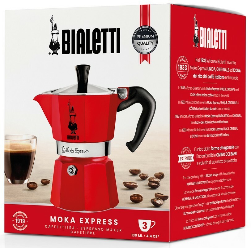 Bialetti Moka Express Espressokanne 3 Tassen Rot