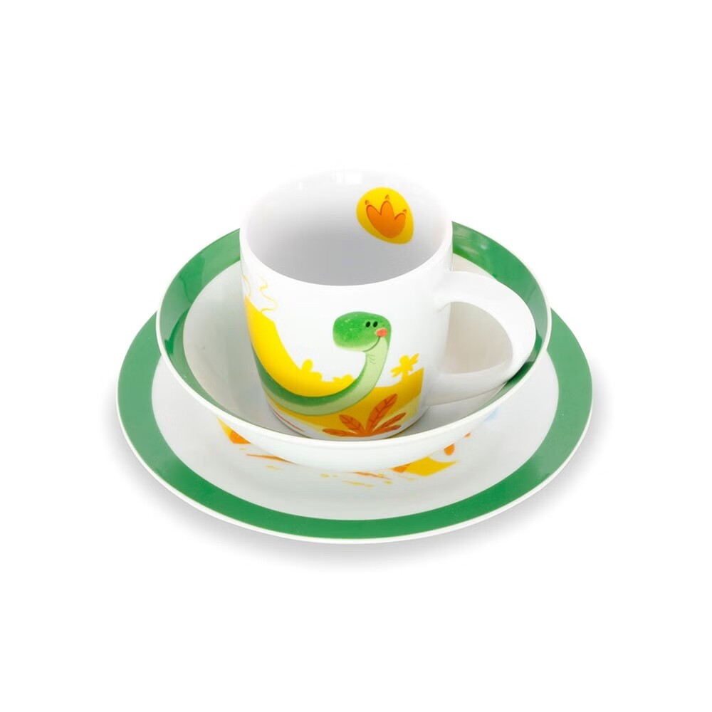 BIOZOYG Kindergeschirr Geschirrsets Porzellan 3-teilig als Geschenk, Dino 3211