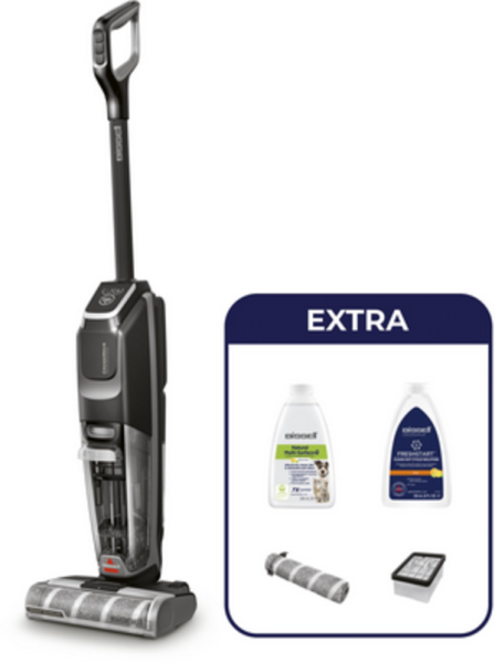 Bissell CrossWave OmniForce Edge Pro. Produkttyp: Standstaubsauger, Staubbehälter Typ: Beutellos, Produktfarbe: Schwarz. Radmaterial: Kunststoff. Reinigungsart: Trocken&Nass, Vakuum-Luftfilterung: Polytetrafluorethylen (PTFE), Schmutztrennungsmethode: Aquafilterung. Leistungskontrolle: Elektronisch. Energiequelle: Akku, Maximale Eingangsleistung: 200 W, Akku-/Batteriespannung: 25,9 V
