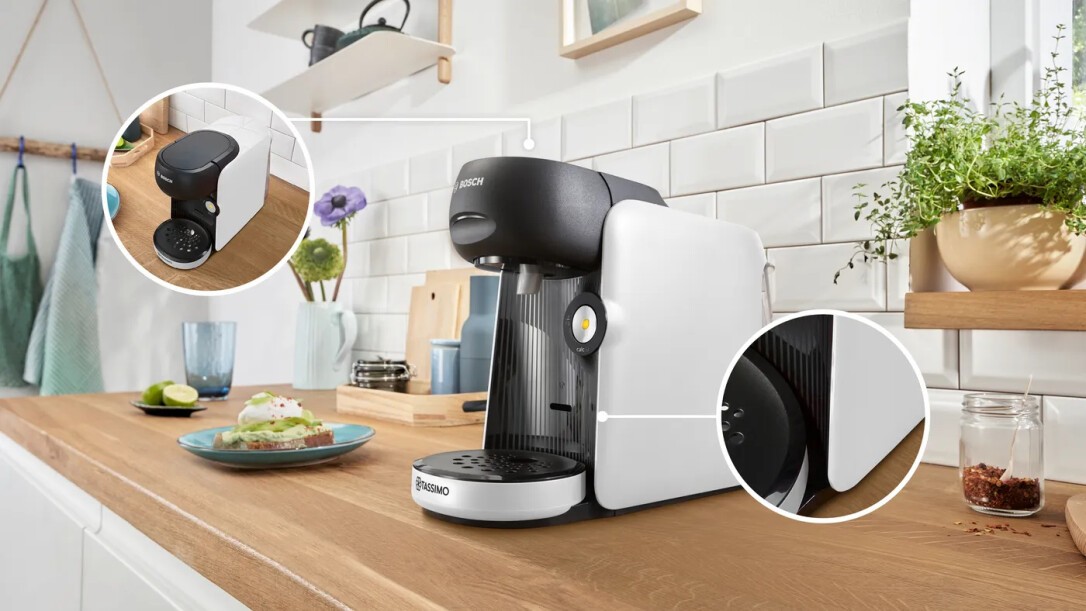 Bosch Tassimo Finesse TAS1640. Produkttyp: Pad-Kaffeemaschine, Kaffeezubereitungstyp: Vollautomatisch, Fassungsvermögen Wassertank: 0,7 l, Kaffee-Einfüllart: Kaffeekapsel, Behälter für gebrühten Kaffee: Tasse. Leistung: 1400 W. Produktfarbe: Schwarz, Weiß