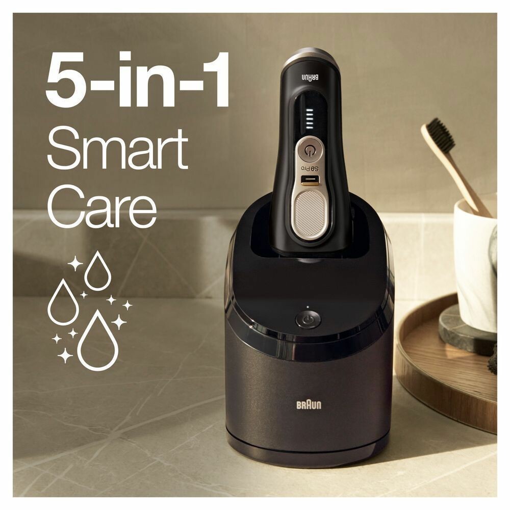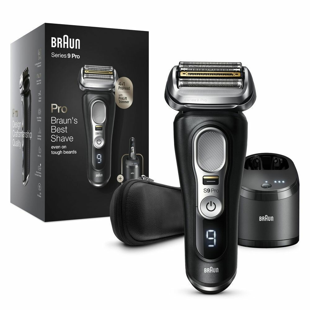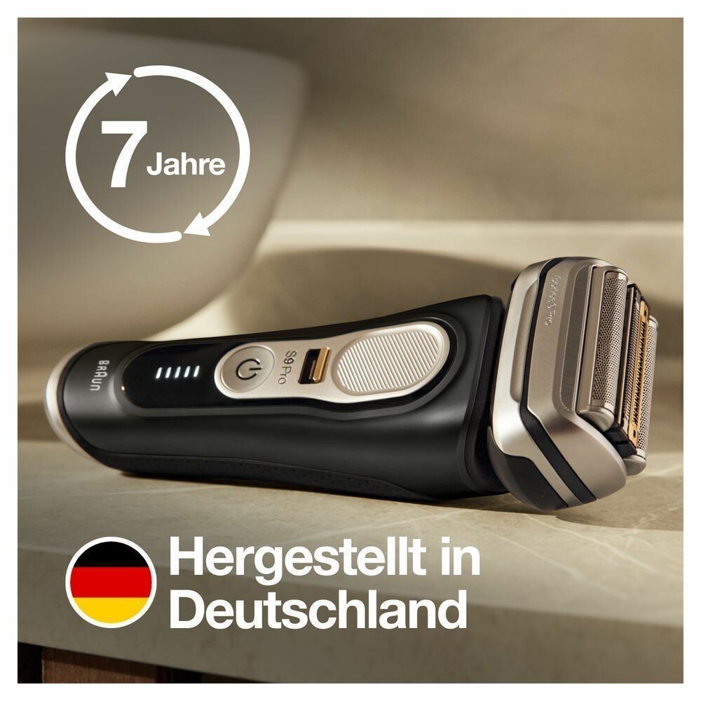 Nass- und Trockenrasierer, Series 9 Pro: Brauns bester Rasierer, neu erfunden mit einem neuen ProHead.Effizient und sanft, egal, ob 1-, 3- oder 7-Tage-Bart: Dieser elektrische. Rasierer für Männer mit unserem einzigartigen ProLift Trimmer hebt und schneidet schwierige Haare. Effizienter und sanfter: Der innovative ProLift Trimmer und die einzigartige Braun Sonic-Technologie helfen, bis zu 10% schneller zu rasieren und gleichzeitig sanft zur Haut zu sein. Mit der Braun 5-in-1 Reinigungsstation: für einen Rasierer, der jeden Tag wie neu ist - mit nur einem Knopfdruck. In Deutschland hergestellt: Dieser Elektrorasierer ist zu 100% wasserdicht und kann mit Schaum, Gel oder sogar unter der Dusche verwendet werden.
