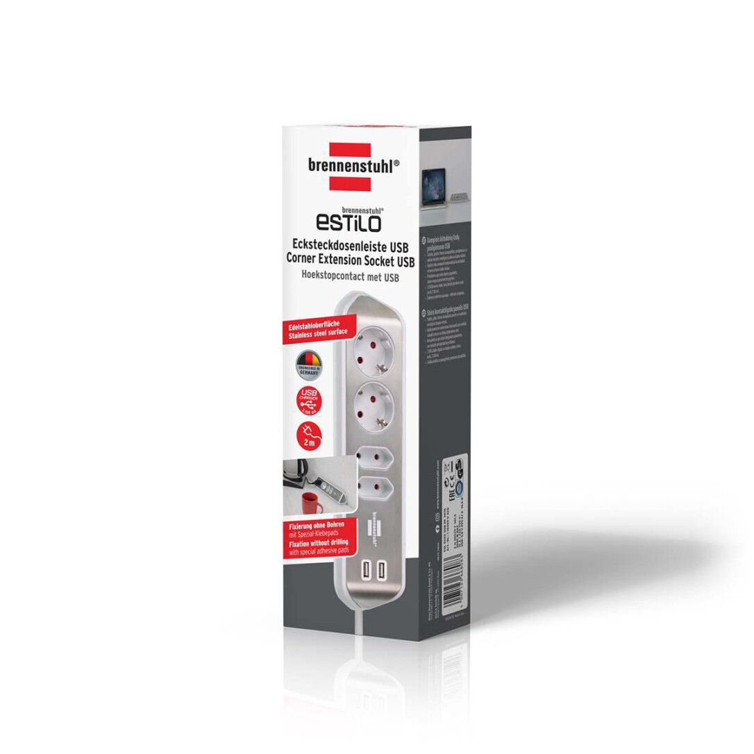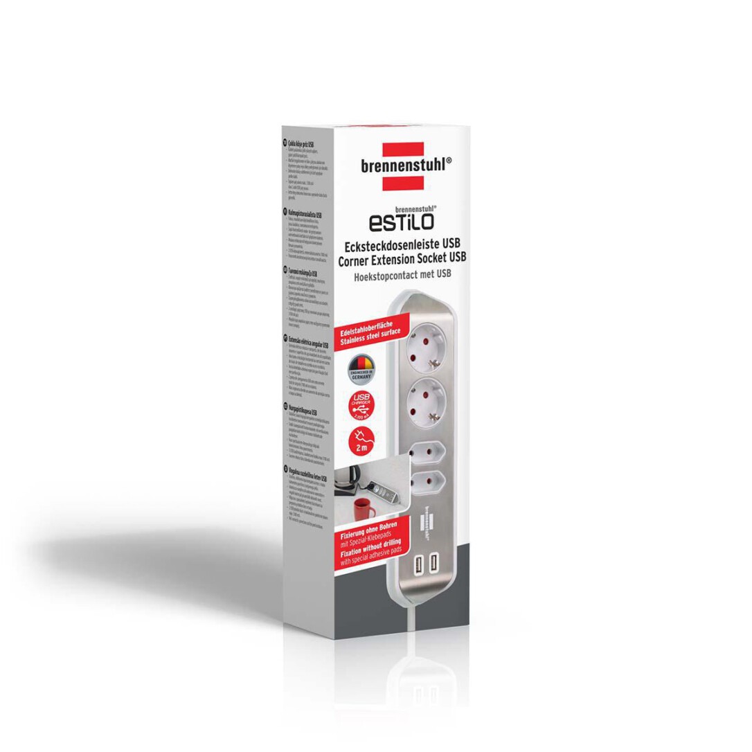 Die kompakte brennenstuhl®estilo Eck-Steckdosenleiste aus hochbruchfestem Kunststoff und hochwertiger Edelstahloberfläche bringt Ihnen Ordnung in Ihr Zuhause.