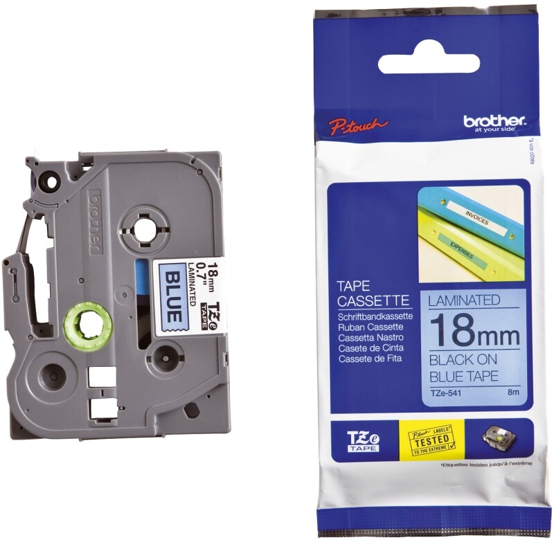 Brother SCHRIFT SCHWARZ / BAND BLAU (TZE541 PRÄGEBAND18MM)