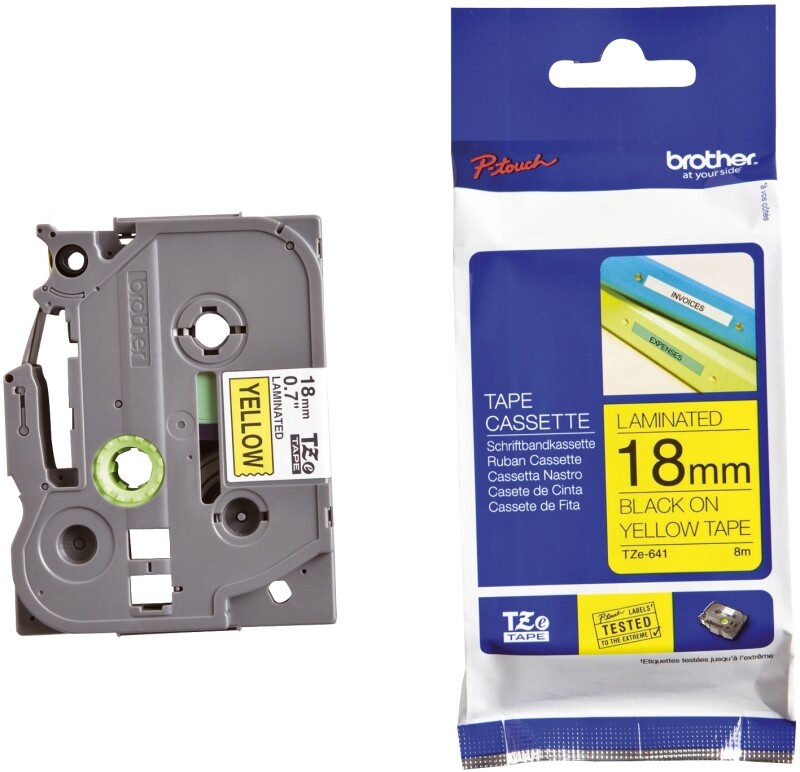 Brother SCHRIFT SCHWARZ / BAND GELB (TZE-641 PRÄGEB. 18MM)