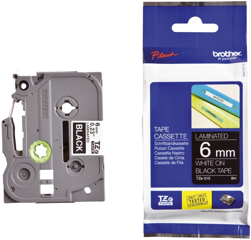 Brother TZE315, Weiss auf Schwarz, TZe, Grau, Wärmeübertragung, Brother, PT-1280HK, PT-1280SN, PT-1280KT, PT-D200HK, PT-1100SN, PT-1100KT, PT-2100VP, PT-2730, PT-7600,...