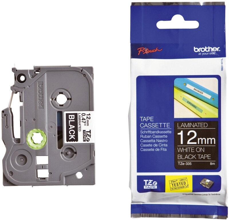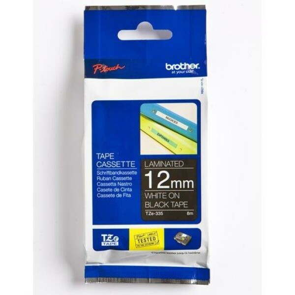 Brother TZE-335, Weiss auf Schwarz, TZ, Brother, 1,2 cm, 8 m, 19 mm