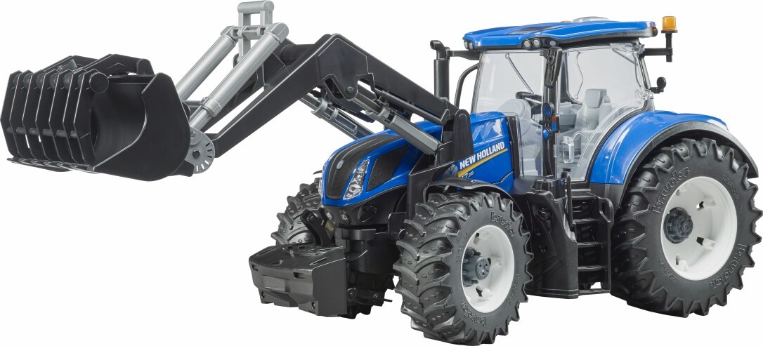 ''In moderneren Landwirtschaftsbetrieben sind starke Traktoren notwendig. Deshalb wurde die Baureihe T7 Heavy Duty von New Holland mit dem Fokus auf Vielseitigkeit und Stärke konzipiert. Bis zu 313 PS lassen sich beim neuen New Holland für den Einsatz von schwersten Arbeitsgeräten abrufen. Damit ist der Traktor stark genug für Zugarbeiten, Bodenbearbeitung, Ballenpressen und Transporte. In Sachen Design, Funktionalität und Qualität steht das neue Modell von BRUDER im Maßstab 1:16 dem Vorbild in nichts nach, getreu dem Motto - just like the real thing. Die Fahrerkabine ist voll verglast und die Türen sind einfach zu öffnen. Die aufklappbare Motorhaube gewährt Einblick auf den imposanten Motor. Ausgezeichnete Steuerbarkeit und Fahrkomfort werden durch die eingebaute Pendelachse und die durch das Schiebedach einsetzbare Lenkverlängerung erreicht. Für noch mehr Spielwert ist bei diesem Modell ein voll funktionsfähiger Frontlader montiert. Optional können Zwillingsreifen (Art.-Nr. 03317) angebracht werden. Durch die höhenverstellbare Heckkupplung passen an diesen Traktor alle landwirtschaftlichen Anhänger und landwirtschaftlichen Arbeitsgeräte aus dem Hause BRUDER. Für noch mehr Spielspaß sind die neuen, abnehmbaren Räder angebracht. Die Erweiterung durch Figurenset Werkstatt (Art.-Nr. 62100) erhöht nochmals den Spielwert dieses tollen Artikels, ebenso kann optional ein Light <(>&<)> Sound Module (Art.-Nr. 02802) angebracht werden.''