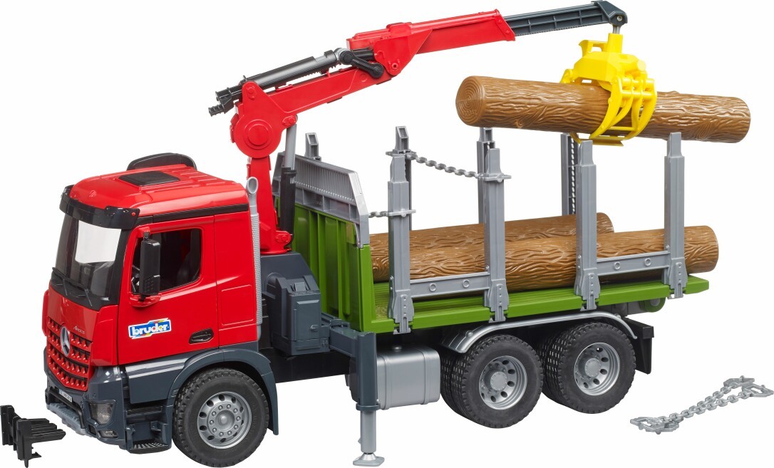 Bruder 03669 MB Arocs Holztransport-LKW mit Ladekran, Greifer + Baumstämme