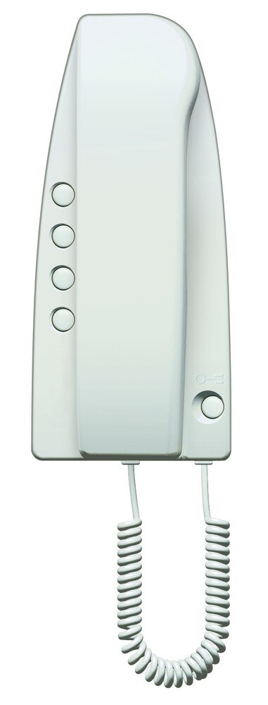 Universal Hausstation Mehrdraht Universelle Audio Hausstation für analoge Sprechanlagensysteme (4+n, 1+n), elektronischer Ruf oder Summer mittels Jumper konfigurierbar, Ruflautstärkeschalter auf 3 Niveaus einstellbar, 1 Türöffnertaste, Hörerkabel steckbar, Montage mit beiliegenden Schrauben und Dübeln auf der Schalterdose, Farbe: weiß.