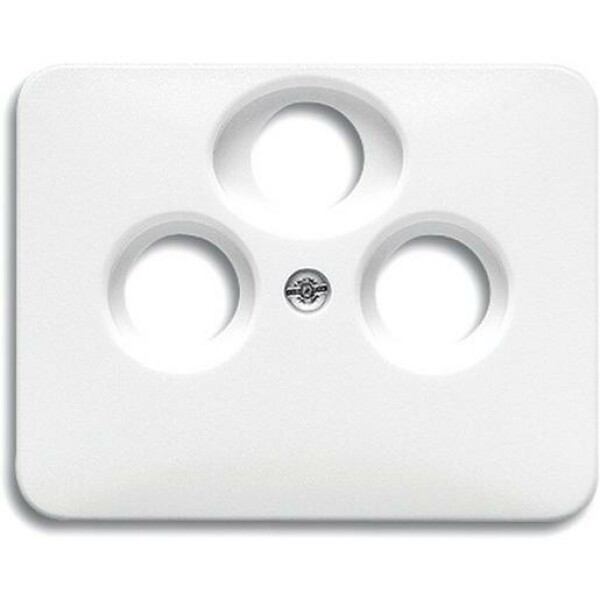 Die Zentralscheibe ist für Antennensteckdosen konzipiert und verfügt über drei Anschlüsse für Radio, TV und SAT-Anlagen. Die Montage erfolgt über eine zentrale Befestigungsschraube M3 und sie ist für die Verwendung mit entsprechenden Antennensteckdosen-Einsätzen vorgesehen. Diese Ausführung ist Teil der Schalterserie alpha und in der Farbe Studioweiß gehalten.