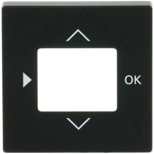 Die Zentralscheibe dient als Abdeckung für Jalousie-Timer und ist mit verschiedenen Bedienelementen, Raumtemperaturreglern, Kurzzeit-Timern sowie dem Raumluftsensor CO2 und dem Jalousie-Compact-Timer kompatibel. Diese Ausführung ist in der Farbe Schwarz matt und passend für das Schalterprogramm der Plattform 63 gestaltet.