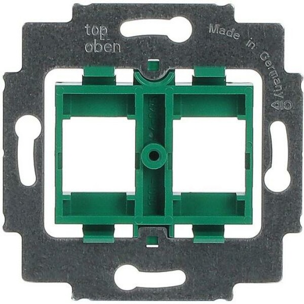 Der grüne Tragring mit Sockel ist für die Aufnahme von zwei Modular-Jack-Einsätzen in gerader Ausführung konzipiert. Er ist kompatibel mit den Systemen von CommScope wie AVAYA, AT und T und Lucent Technologies sowie mit GigaSPEED, PowerSUM, 360 GS 10E bis MGS 600-BK, M1 BH-xx und MPS 100E-xx. Im Lieferumfang ist ein R und M-Adapter enthalten, der für die R und M Anschlussmodule R305111, R305112, R305113 und R305114 geeignet ist. Das Rastmaß des Einsatzes beträgt circa 16,9 mm x 17,9 mm. Die Montage erfolgt ohne Spreize. Anhand des angegebenen Rastmaßes kann die Kompatibilität mit weiteren, nicht explizit aufgeführten Herstellersystemen geprüft werden.