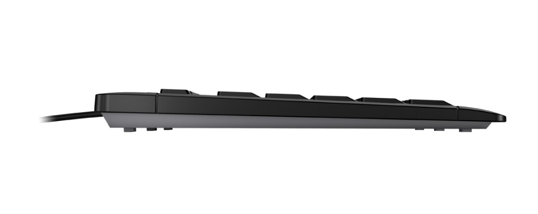 Die moderne, flache kabelgebundene Tastatur ist durch die sanften und leisen Tasten besonders fürs Büro geeignet.