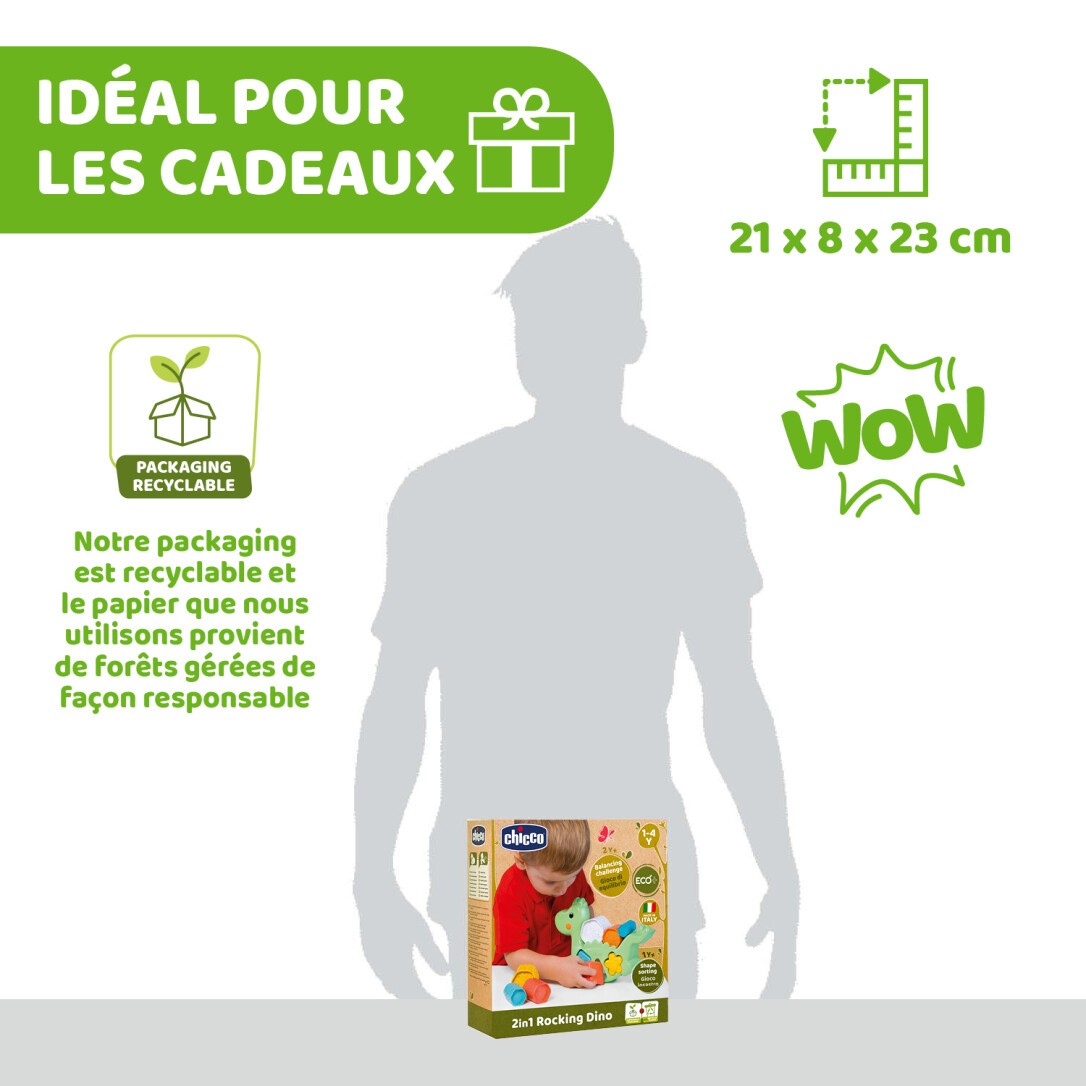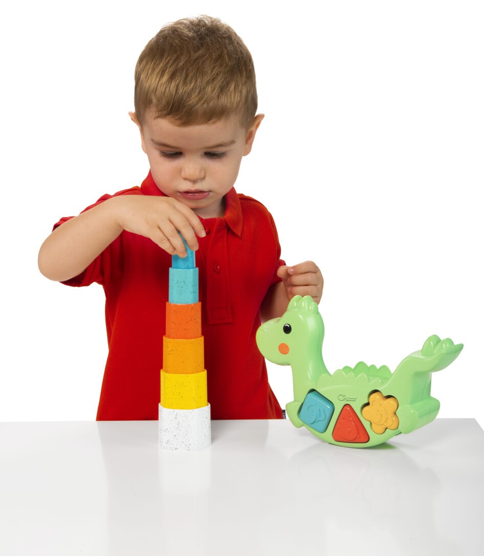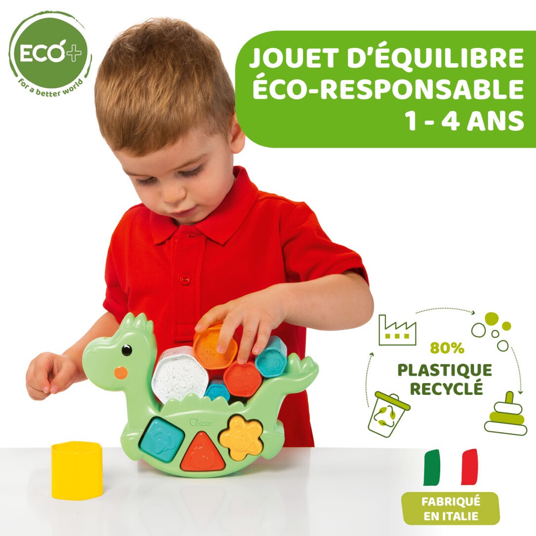 2 in 1 Balance- und Sortierdino. Finde das richtige Gleichgewicht mit den 6 Zylindern und setze die 3 Formen in ihren richtigen Platz ein. Balance-Aktivität: Lege alle 6 Zylinder in der richtigen Position auf den Dinosaurier, um ihn ins Gleichgewicht zu bringen und versuche dabei, keinen Zylinder fallen zu lassen. Sortier-Aktivität: Setze die 3 Formen in ihren richtigen Platz ein. Stapel alle Zylinder aufeinander, um einen Turm zu bauen. Das Spielzeug hilft mit 3 verschiedenen Aktivitäten kognitive und manuelle Fähigkeiten zu entwickeln. Hergestellt aus 80% recyceltem Kunststoff aus industriellem Produktionsüberschuss. Es werden verschiedene Farbkombinationen unter gleicher Artikelnummer angeboten. Die Abbildungen können demnach vom Original abweichen.