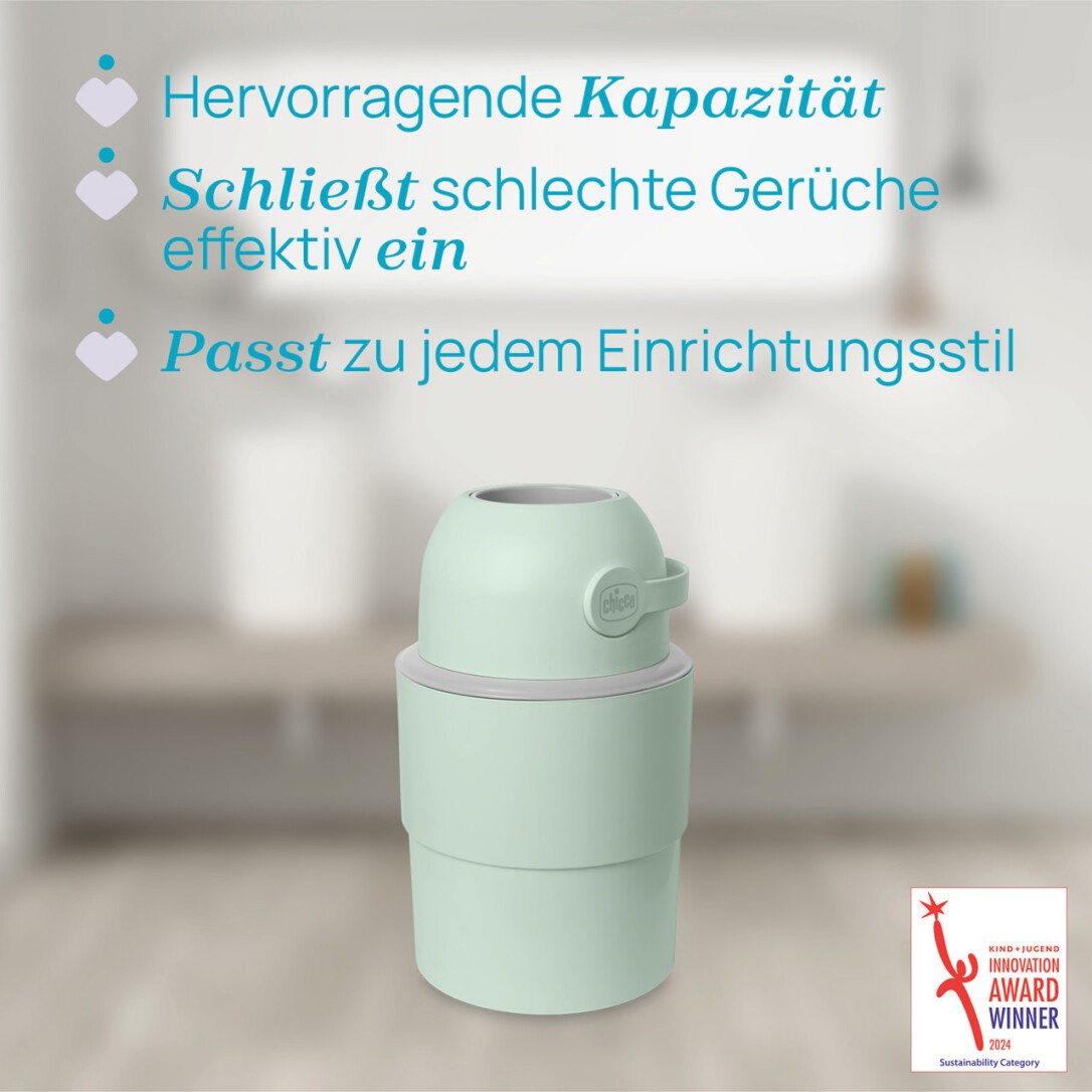 CHICCO Teleskop Windeleimer Odour Off grün inkl. 1 Pck. Muellbeutel Odour Off
