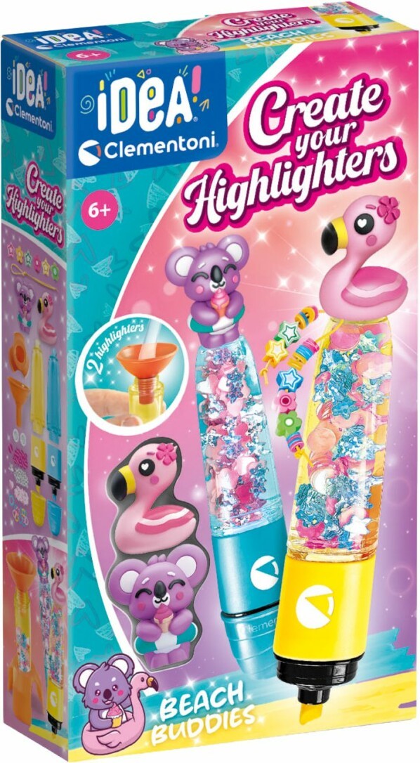 '' Ein originelles Kreativset, mit dem man 2 Textmarker zusammensetzen und mit verschiedenen Dekorationen personalisieren kann. Ein praktisches und reichhaltig sortiertes Set, das Folgendes enthält: 2 Textmarker, verschiedenfarbige Tinte, Figuren und alle Instrumente, um sie zu gestalten. Ein neues IDEA Kreativ-Set, mit dem Kinder ihre Stifte mit vielen Accessoires und Dekorationen gestalten und personalisieren können. Kinder können damit nicht nur ihren Stift selbst gestalten, sondern auch ihrer Fantasie freien Lauf lassen. Entwickelt und gestaltet in Italien. Empfohlenes Alter: 6 Jahre und älter. ''