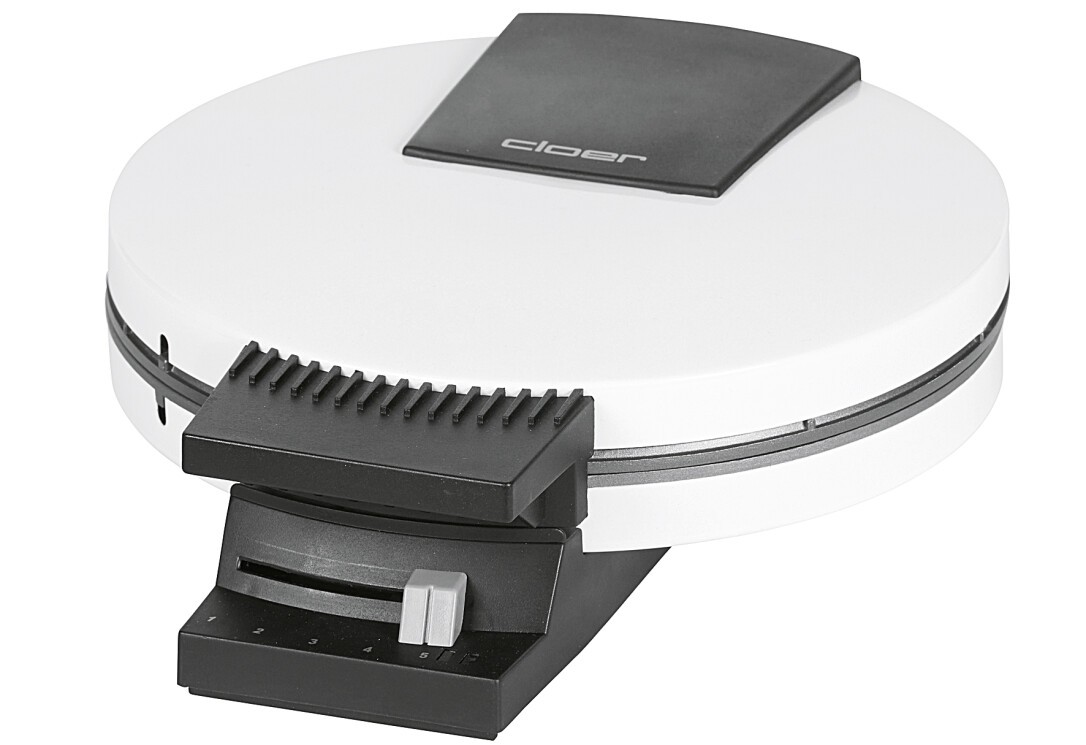 Das Cloer Waffeleisen 120 backt Waffeln in Herzform. Der Bräunungsgrad kann mit Hilfe eines Schiebereglers an der Gerätevorderseite stufenlos eingestellt werden. Eine optische Fertigmeldung gibt Auskunft darüber, ob die Waffeln fertig gebacken sind. Die Antihaftbeschichtung der 24 cm großen Backfläche ermöglicht ein fettarmes Backen. Ein innenliegendes Scharnier und die Fettauffangrille vereinfachen die Reinigung des Gerätes. Dank der Kabelaufwicklung mit Steckerdepot und durch das Hinstellen auf die Griffe kann es platzsparend verstaut werden.