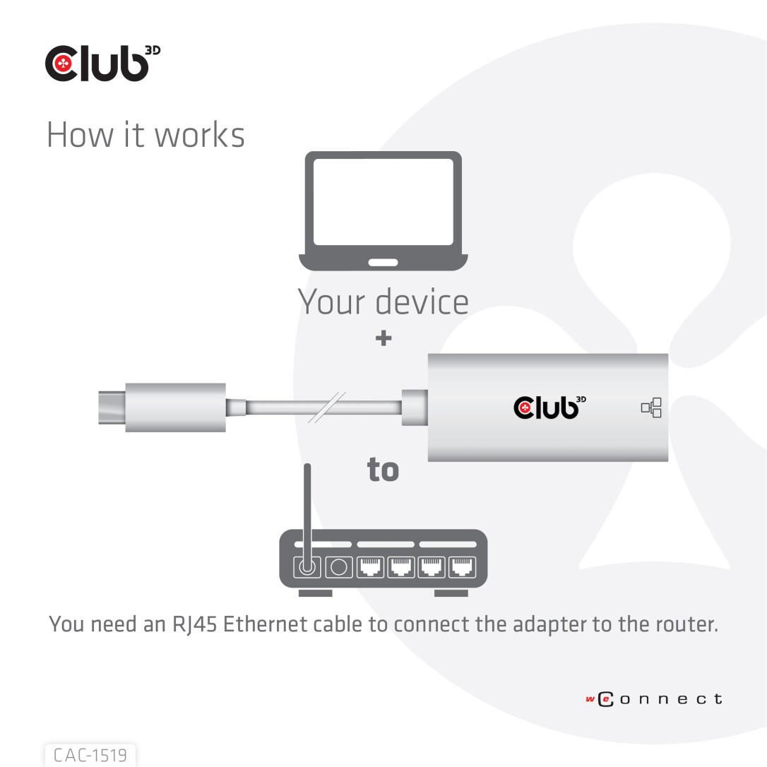 Club 3D Club3D Adapter USB 3.2 Typ C > RJ45 Gigabit LAN St/Bu retail (CAC-1519)