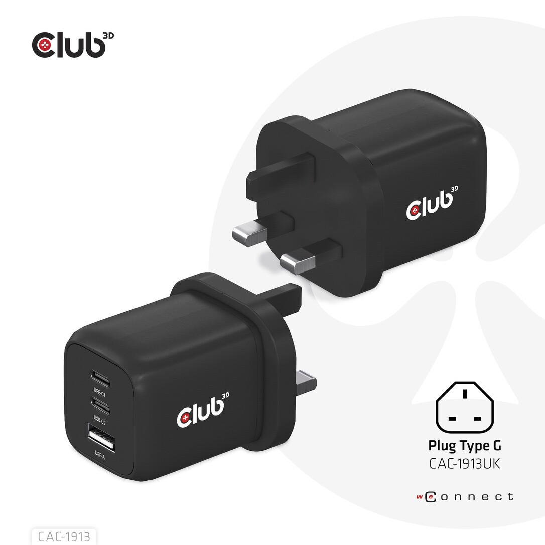 Club 3D Club3D Ladegerät 2xUSB Typ C, 1xUSB Typ A, PD 65W, GaN retail (CAC-1913EU)
