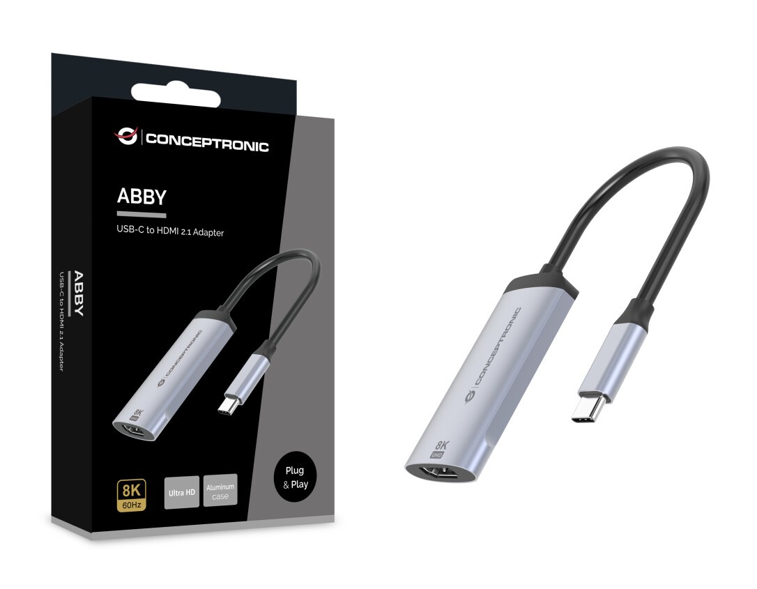 Conceptronic ABBY23G USB-C-auf-HDMI-2.1-Adapter, 8K60Hz, USB Typ-C, HDMI-Ausgang, 7680 x 4320 Pixel