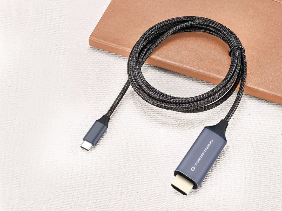 Conceptronic USB-C zu HDMI-Kabel, Male to Male, 4K 60Hz, 2 m, USB Typ-C, HDMI, Männlich, Männlich, Gerade