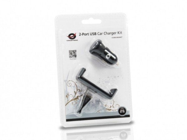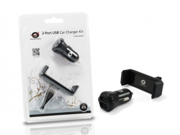 CONCEPTRONIC KFZ-Ladegerät 2-Port 2xUSB-A +Halter 10W sw (CUSBCAR2AKIT)