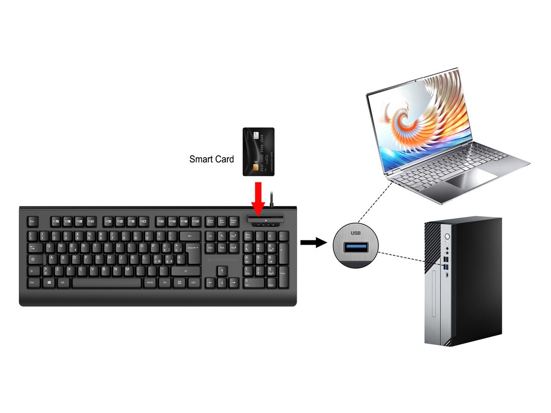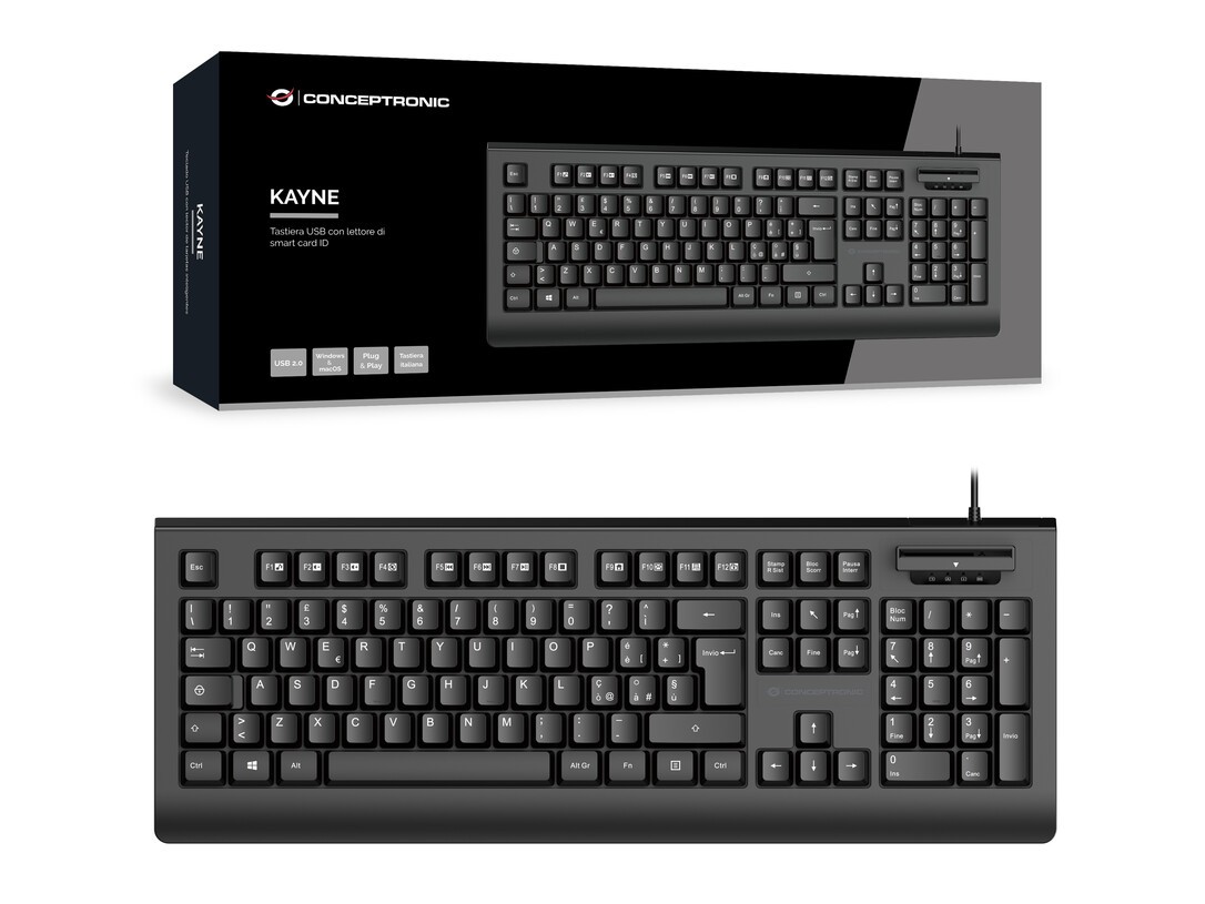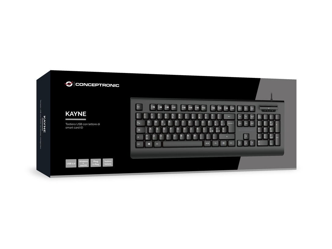 Conceptronic KAYNE01IT USB-Tastatur mit Smart-ID-Kartenleser, italienisches Layout, Volle Größe (100%), Kabelgebunden, USB, QWERTY, Schwarz