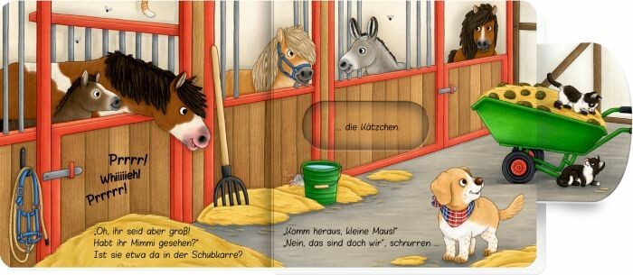 Kikeriki! Kikeriki! - ''Mimmi, bist du das? Komm heraus, kleine Maus!'' Ein lustiges Such-Buch mit leichtgängigen, stabilen Schiebern und einer ersten durchgehenden, witzigen Bauernhof-Geschichte. Pappbilderbuch mit Spieleffekt.