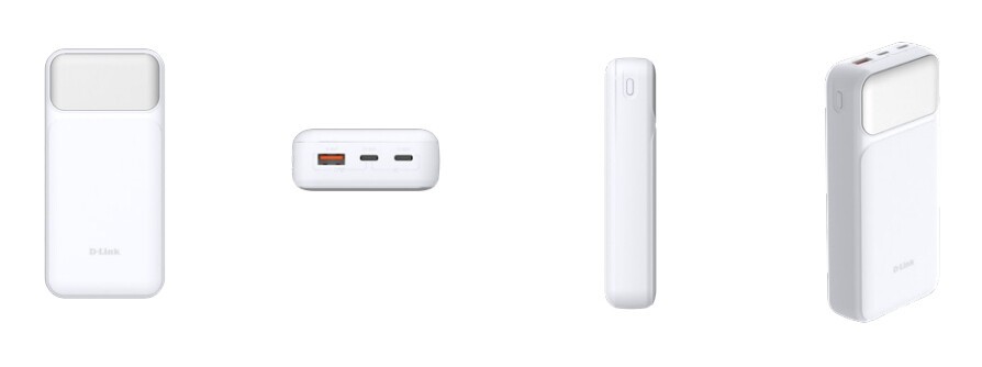 D-Link 20000mAh Power Bank. Akku-/Batteriekapazität: 20000 mAh. USB-Typ-A-Ausgangsports: 1, USB Typ-C Anzahl Anschlüsse: 2. Produktfarbe: Weiß