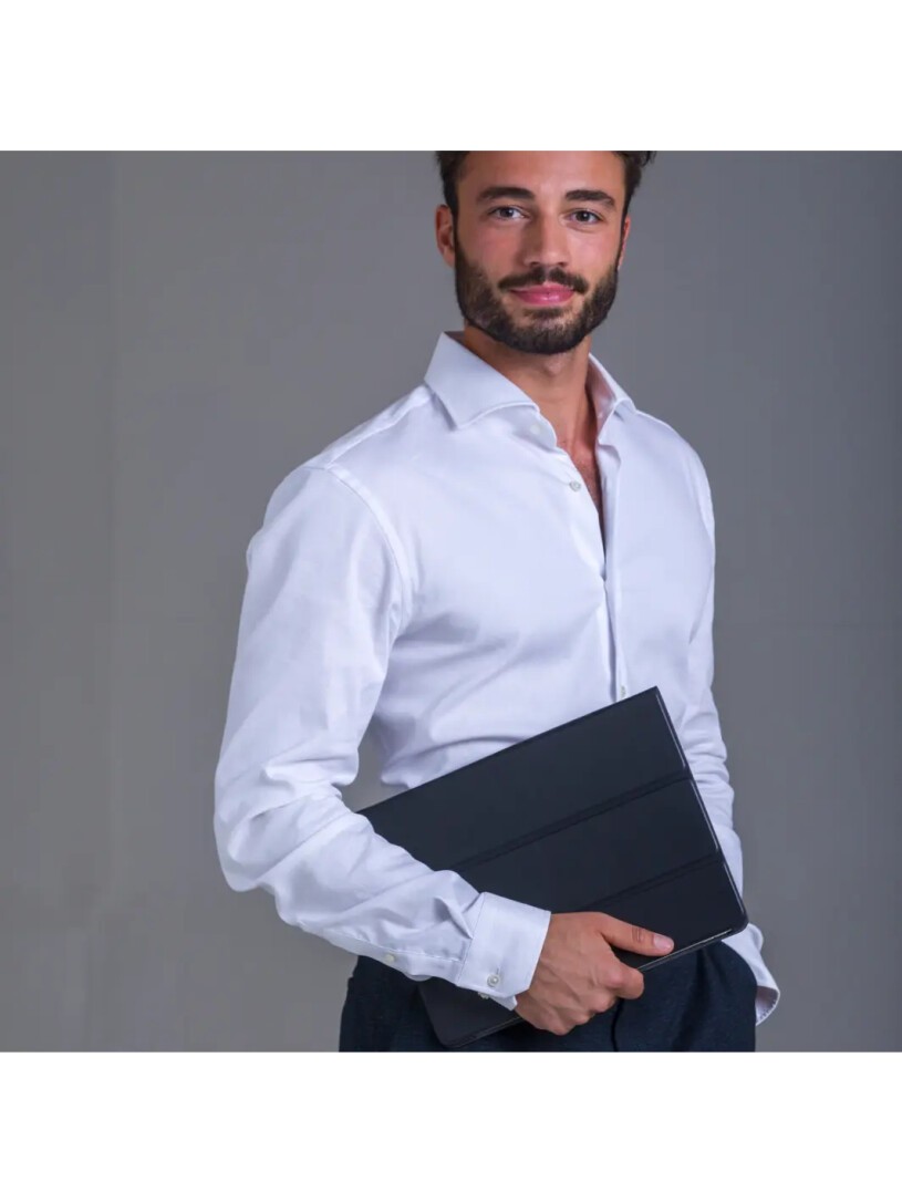 Risskov ist eine dreifach gefaltete iPad-Foliohülle mit einem ultraflachen und dennoch stoßfesten Design. Es ist die perfekte iPad-Hülle für Ihre sich ändernden Bedürfnisse! Die beiden Stehpositionen bieten einfaches Tippen sowie freihändiges Ansehen von Videos. Wirklich, es liegt ganz bei Ihnen, welche Standfunktion Sie zum Tippen, Lesen oder Streamen bevorzugen. Features: - Handgefertigt aus nachhaltig gewonnenem Vollnarbenleder - Automatische Weck- und Schlaffunktion - Magnetverschluss - Dreifach gefaltetes Design - Maßgeschneidertes, schlankes und dennoch schlagfestes Design mit Platz für einen Stift - Weiches Innenfutter zum Schutz vor Kratzern - Hergestellt in der 100 % CO2-neutralen Fabrik von dbramante1928
