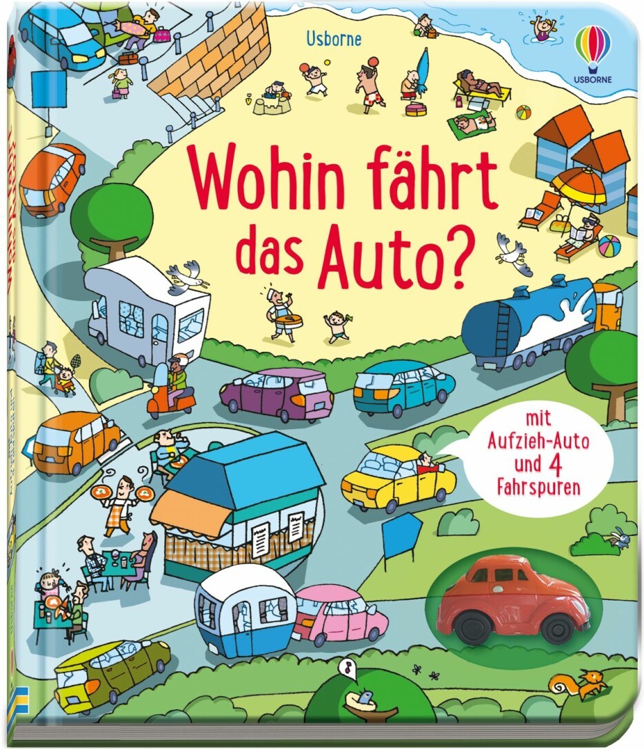 Das rote Aufzieh-Auto ist auf dem Weg zum Strand! Lass es auf den vier Fahrspuren durch die Stadt, über die Autobahn und die Landstraße zu seinem Ziel sausen und finde heraus, was es auf dem Weg zu entdecken gibt. Spielspaß für Groß und Klein!