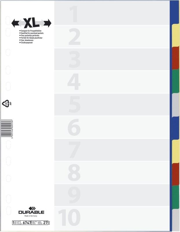 Durable 6747-27. Typ: Numerischer Registerindex, Material: Polypropylen (PP), Produktfarbe: Blau