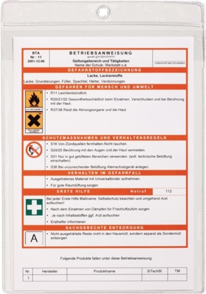 Sichttaschen zum Schutz von Aushängen und Etiketten.