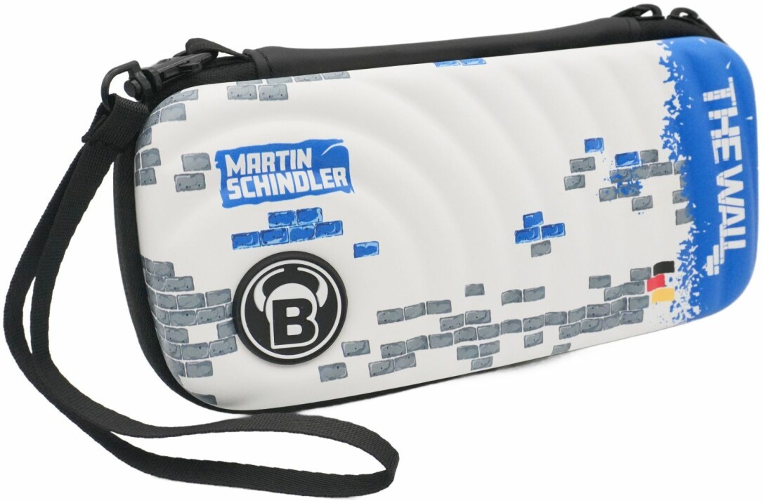BULL'S Orbis S Dartcase Martin Schindler. Orbis steht für die neuste Generation der Hardcases. Bei der Entwicklung des Cases wurde der Fokus auf die Wünsche der Dartspieler gelegt. Die Orbis S Variante bietet aufgrund der Schaumstoffhalterung einen perfekten Halt <(>&<)> Schutz für ein komplettes Dart Set. Zusätzlich befinden sich zwei Extraseiten im Case, die Platz für 6 Sätze Flights und 12 Schäfte bieten. Eine praktische Netztasche mit Reißverschluss für Soft Tips <(>&<)> Zubehör ist ebenfalls integriert. Das Dartcase überzeugt dank hochwertigem und robustem EVA- Material sowie des modernen Designs mit BULL'S Logo. Punkten kann das Orbis zudem dank der Handlichkeit und der Raumaufteilung. Die Flights können auf dem Dart stecken bleiben ohne zu verknicken. Der Reißverschluss des Orbis ist verdeckt und leichtläufig. Diese spezielle Martin Schindler Edition besitzt das ''The Wall'' Design. Im Lieferumfang enthalten sind zusätzlich ein Karabinerhaken sowie eine Handschlaufe, die am Case befindet. Empfohlen für Kinder ab 8 Jahren.