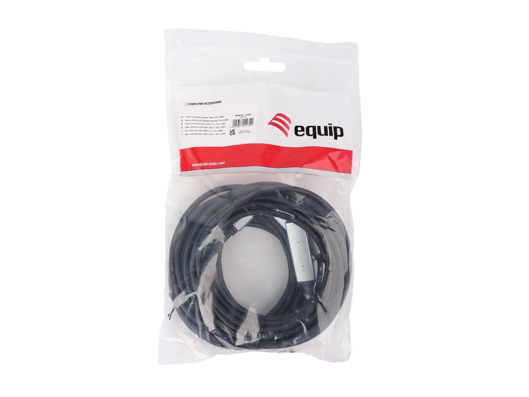 Equip USB-C auf USB-C Aktiv-Verlängerungskabel, 10m, 5 Gbit/s. Kabellänge: 10 m. Anschluss 1: USB C, Anschluss 2: USB C, USB-Version: USB 3.2 Gen 1 (3.1 Gen 1), Max. Datenübertragungsrate: 5 Gbit/s, Produktfarbe: Schwarz