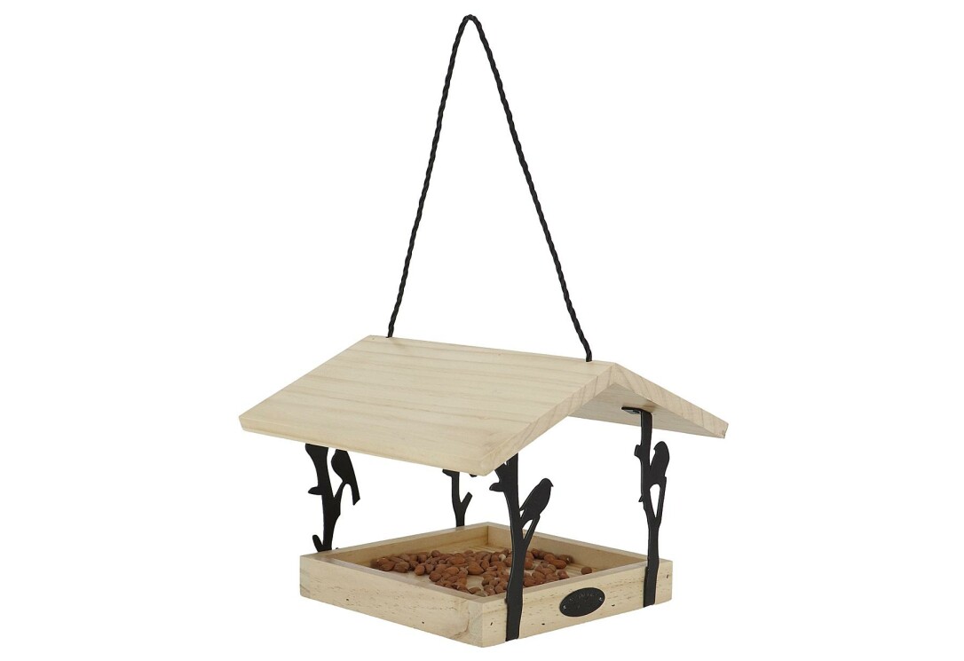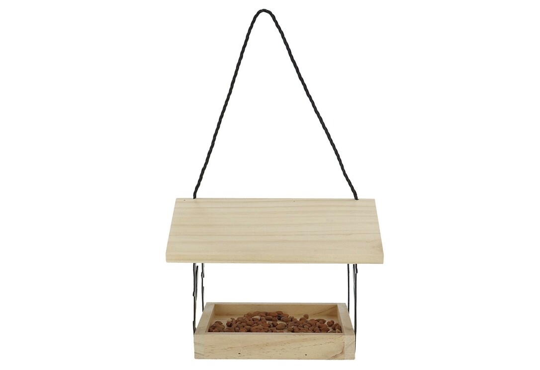 "Zilpzalp" Futterhaus hängend. Material: Kiefernholz. Maße: (LxBxH): 24,5x24,5x18,3 cm.