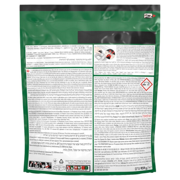 (AT) 1 Tab = 1 Spülgang Geben Sie einen Spülmaschinentab in die Dosierkammer und schließen Sie diese sofort. Nur mit trockenen Händen verwenden. Tab nicht auspacken und zusammenklebende Tabs nicht trennen. Verschließen Sie den Beutel nach jedem Gebrauch. Für beste Ergebnisse legen Sie den Tab in die Dosierkammer. Sollte der Tab nicht in die Kammer passen, legen Sie ihn auf den Besteckkasten und wählen Sie ein Spülprogramm ohne Vorwäsche. Ihre Spülmaschine sollte auch dann einwandfrei reinigen, wenn die Klarspüler- oder Salz-Warnleuchte aufleuchtet. Bei extrem hartem Wasser über 21°dH (≤5% der Haushalte) verwenden Sie bitte Salz. Spülen Sie kein antikes/handbemaltes Porzellan oder feines Kristall in der Maschine. Legen/spülen Sie keine echten Silbergegenstände in der Spülmaschine.