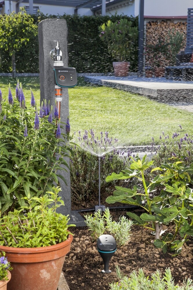 Der smart Water Control sorgt für eine bedarfsgerechte Wasserversorgung der Pflanzen im Garten.
