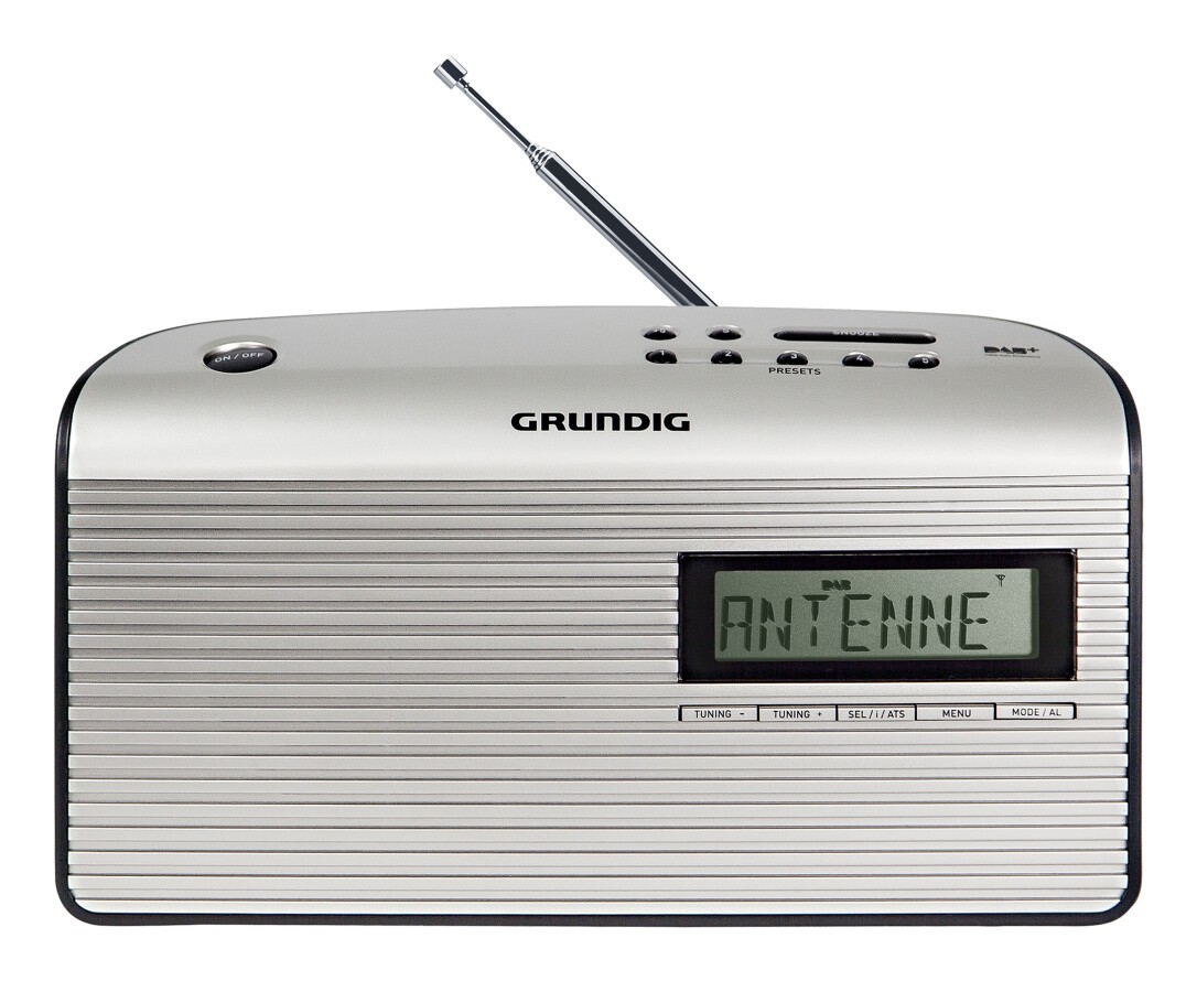Grundig Music 7000X DAB+ BP. Radiotyp: Tragbar, Tunertyp: Digital, Unterstützte Bänder: DAB+, FM. Display-Typ: LCD. Produktfarbe: Silber. Energiequelle: Wechselstrom/Batterie, Stromverbrauch (Standardbetrieb): 1 W. Breite: 290 mm, Tiefe: 107 mm, Höhe: 117 mm
