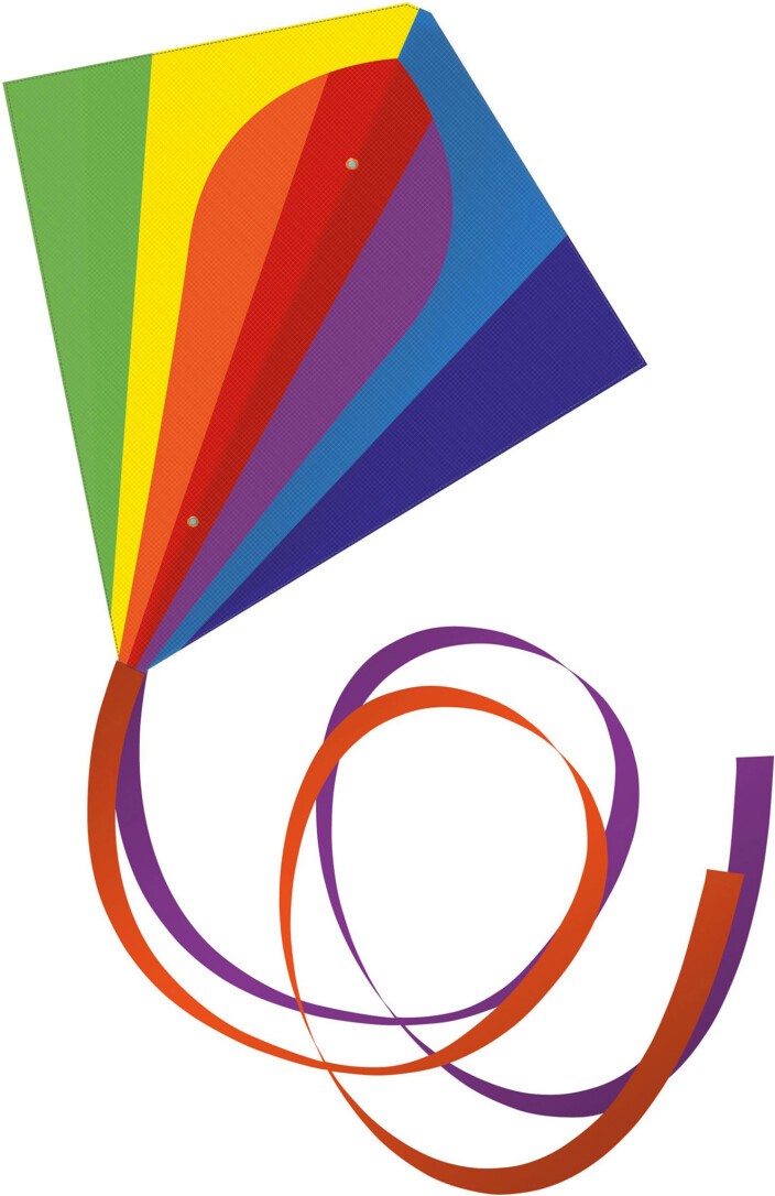 Einleinerdrachen mit Segel aus Ripstop-Polyester. Wind: 15-45 km/h. Komplett mit Griff, Schnur und Schwänzen. Größe des Modells: ca. 70 x 70 cm. Für Kinder ab 6 Jahren.