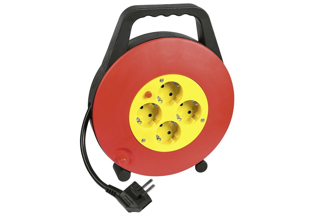 Robustes Kunststoffgehäuse, 4 Schutzkontakt-Steckdosen, Thermoschalter für mehr Sicherheit, Drehbarer Wickelgriff mit Integrierter Wiederanlaufsperre, Kabel-Querschnitt 3 x 1,5mm², Nenn-Eingangsspannung: 250V/16A, Anschlussleistung(aufgerollt) max.3200W