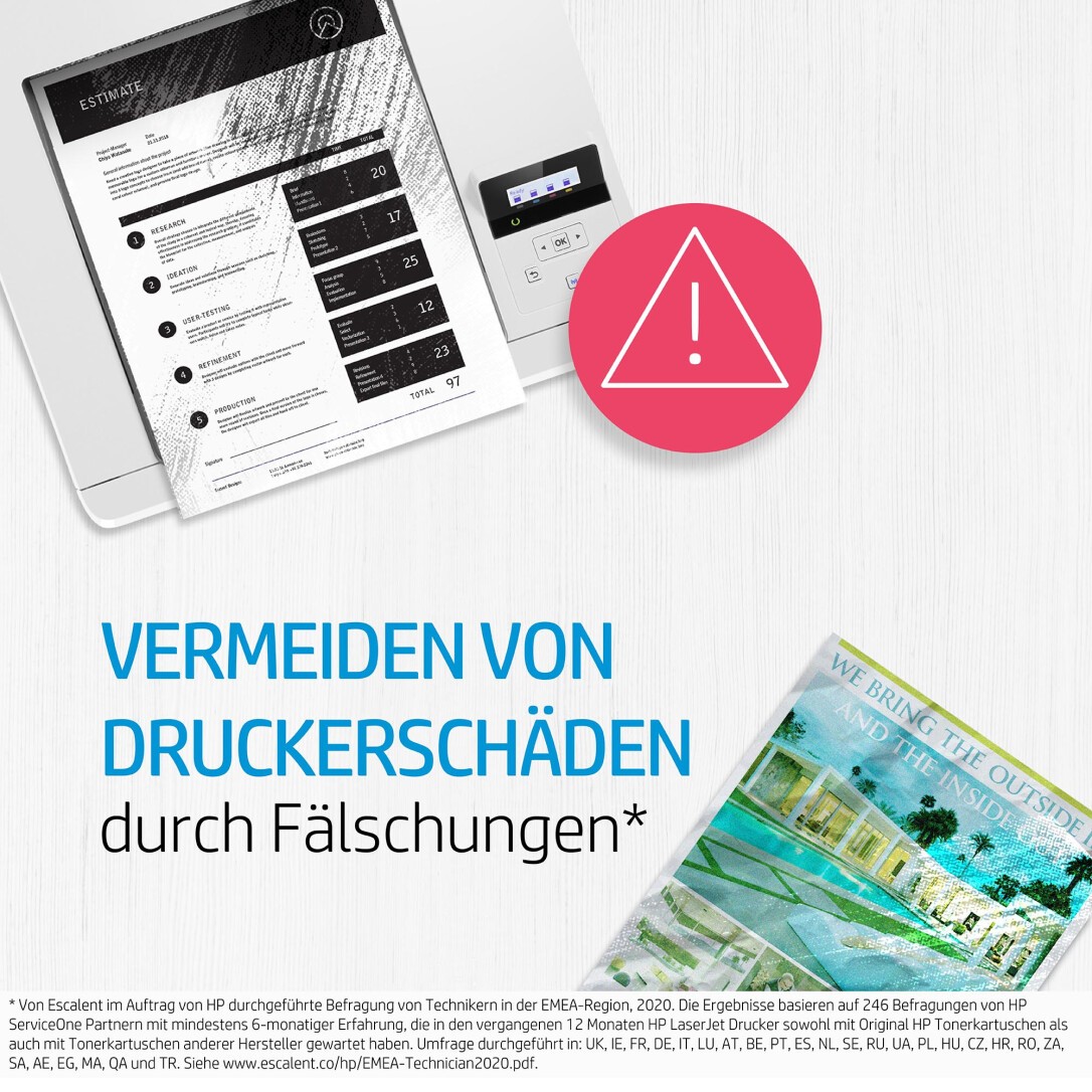 - Vergeuden Sie weder Zeit noch Geld für erneutes Drucken. Die in die Druckkassetten integrierte Technologie gestattet es dem System, die Druckqualität und die Zuverlässigkeit zu optimieren. Sorgenfreier Original HP Druck für stets konsistente Farben in Profiqualität