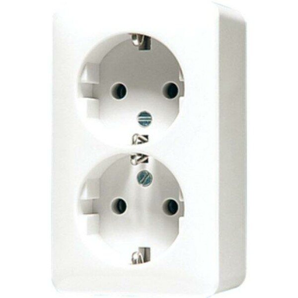 SCHUKO-Steckdose 2-fach 16 A 250 V ~, Bodenplatte aus flammwidrigem Kunststoff.