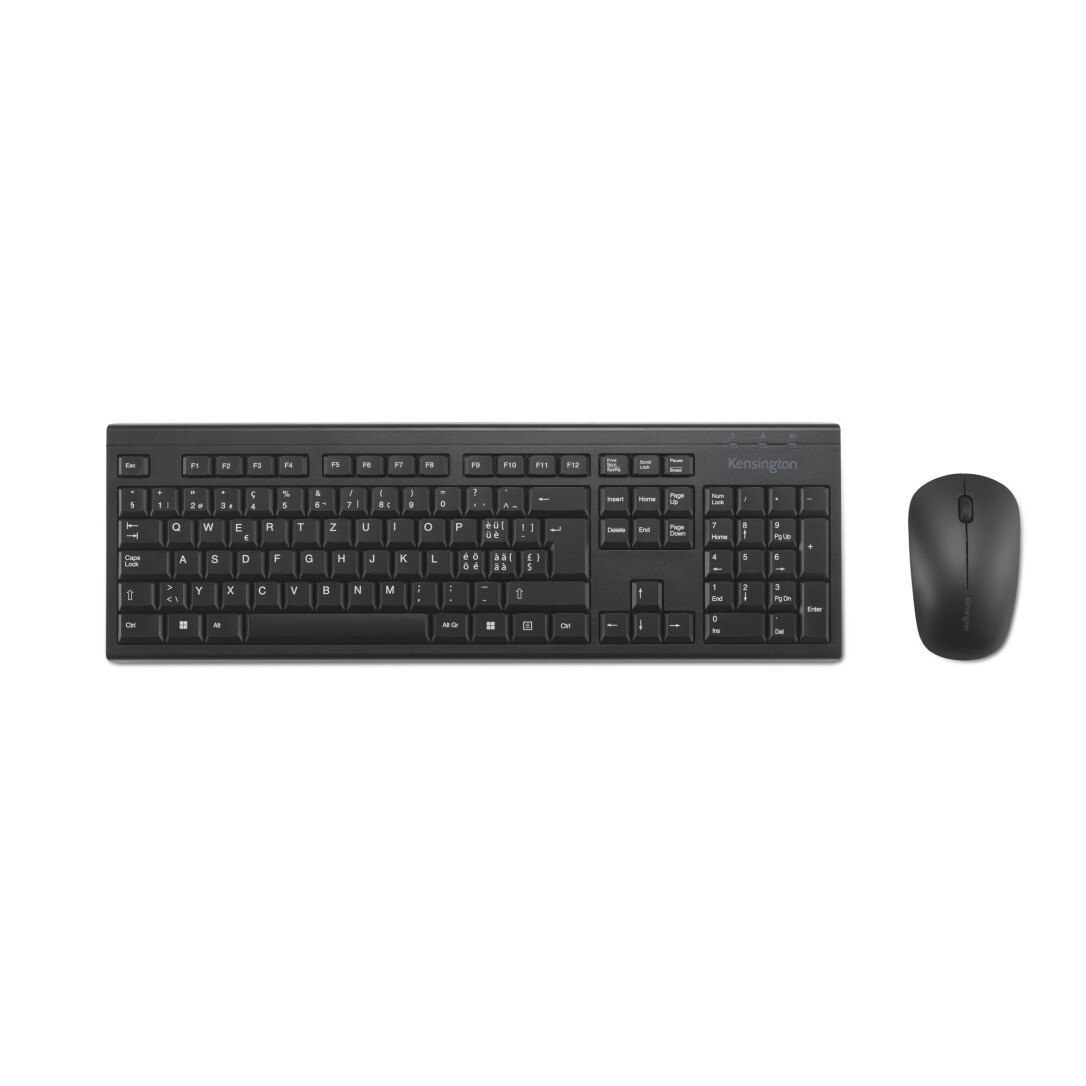 Kensington KM150 EQ Wireless Tastatur und Maus Set (Swiss-Layout), Kabellos, RF Wireless, Membran Key Switch, QWERTZ, Schwarz, Maus enthalten